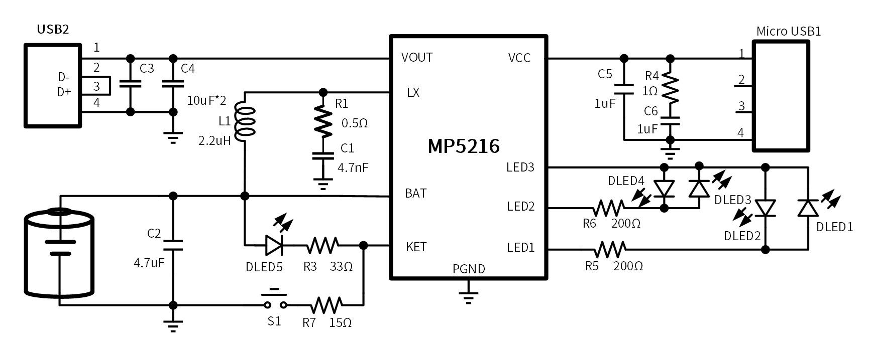 MP5216 is a power bank solution device which is highly integrated with switch charger, LEDdisplay cell and synchronous boost output.