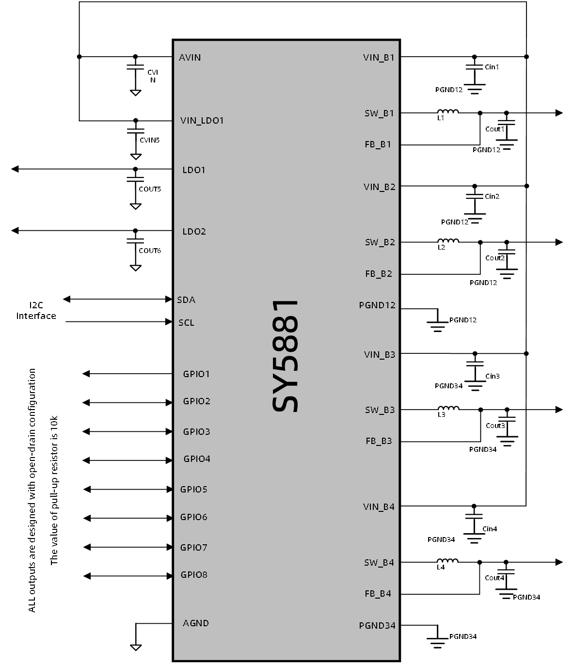 There are four DCDC converters and two linear regulators integrated into the SY5881,